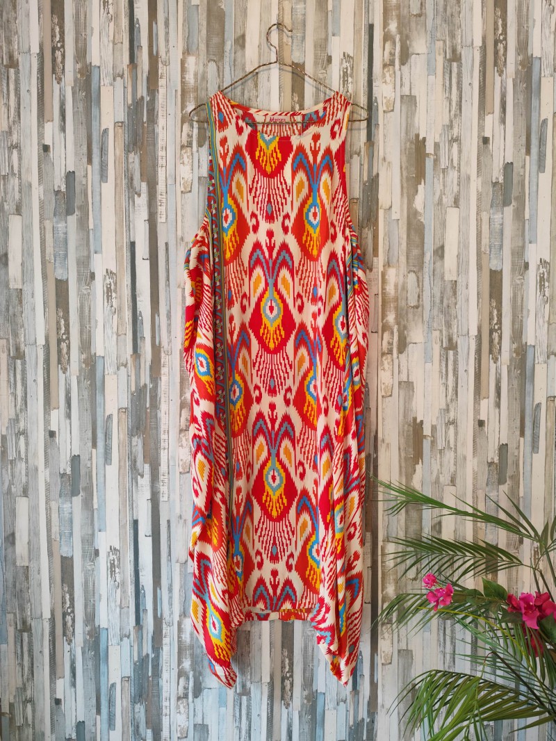 Explosión de color y comodidad con el vestido largo Asimetrik de estampado vibrante. Sumérgete en un mundo de color con este vestido largo Marada, una pieza única que combina estilo y confort. Confeccionado con tejidos de alta calidad, este vestido ofrece una sensación de suavidad y frescura inigualable. Su diseño de manga a la sisa y talla única garantiza un ajuste favorecedor para todas las siluetas, permitiéndote moverte con libertad y elegancia. El estampado colorido, con una mezcla de tonos vibrantes y patrones llamativos, añade un toque de alegría y originalidad a tu look. Perfecto para eventos de verano, festivales o para darle un toque bohemio a tu día a día. Siente la calidad y el diseño exclusivo de Marada con este vestido que te hará sentir radiante y llena de vida.