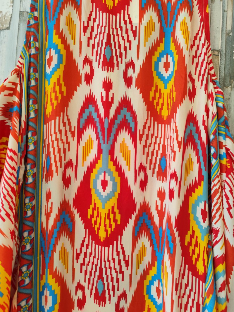 Explosión de color y comodidad con el vestido largo Asimetrik de estampado vibrante. Sumérgete en un mundo de color con este vestido largo Marada, una pieza única que combina estilo y confort. Confeccionado con tejidos de alta calidad, este vestido ofrece una sensación de suavidad y frescura inigualable.