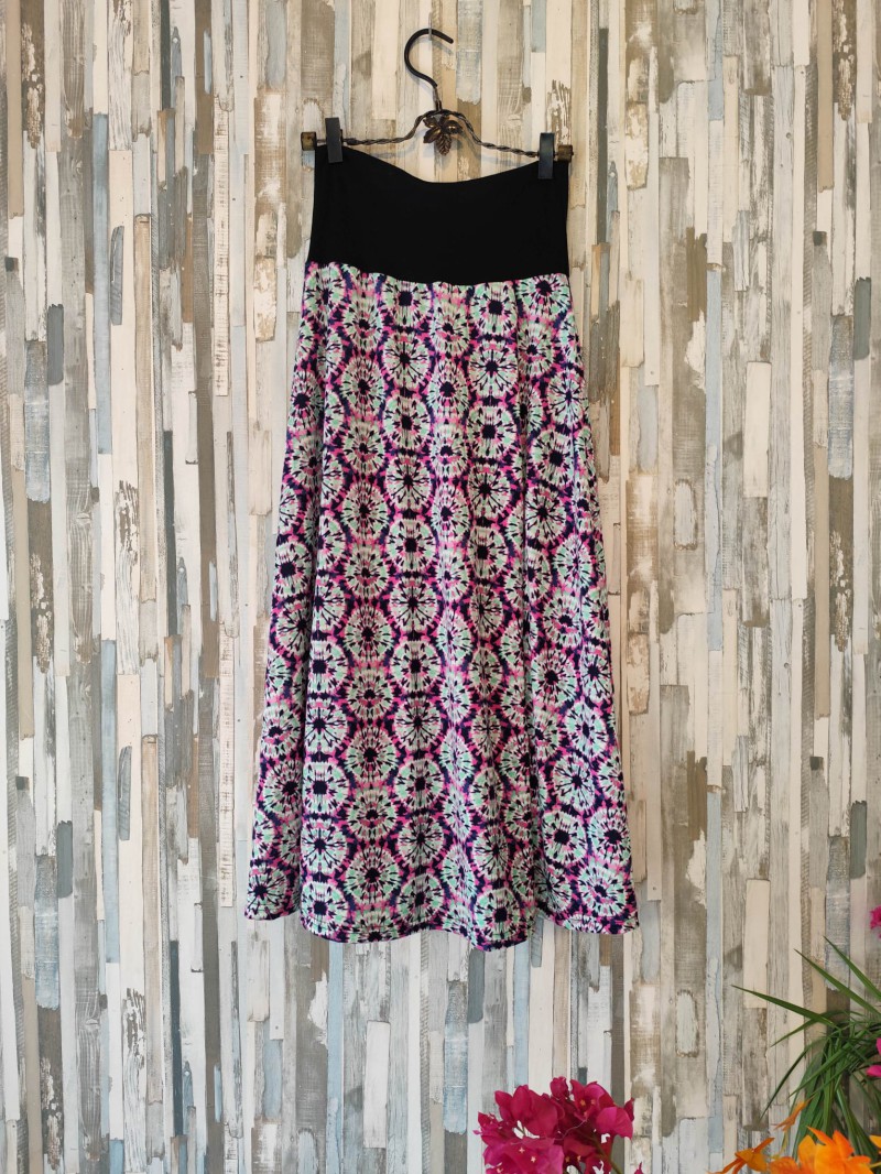 Comodidad y estilo vibrante con nuestra falda larga de estampados coloridos. Luce un look lleno de energía con esta falda larga de talla única, diseñada para adaptarse a todas las siluetas. Confeccionada con una mezcla de 95% poliéster y 5% spandex, esta falda ofrece una sensación de suavidad, elasticidad y confort inigualable.
